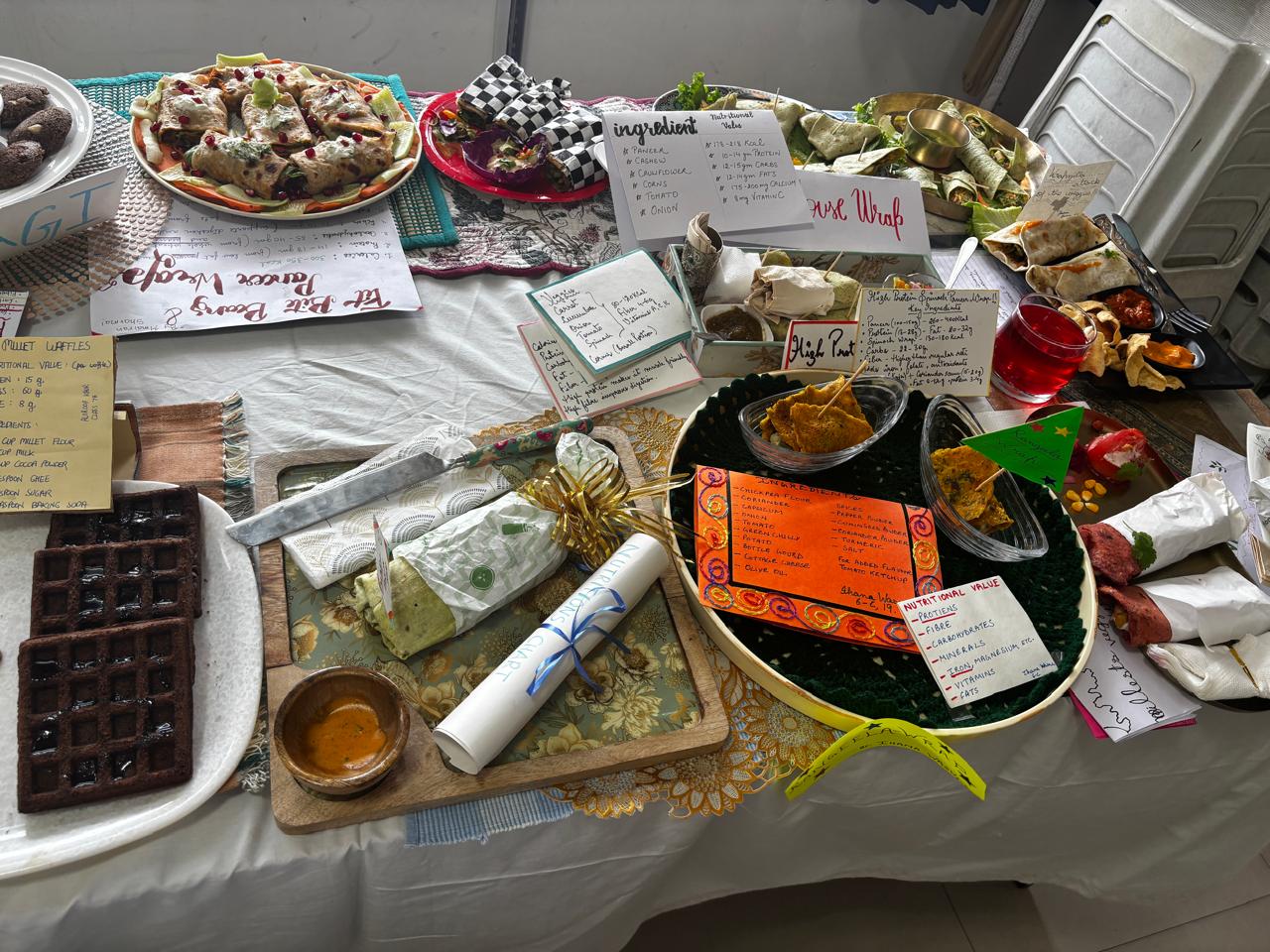 Class VI students displayed remarkable enthusiasm. Class VI A prepared an assortment of fresh and nutritious salads, including Russian, Mediterranean, Greek, Cobb, and kale and quinoa varieties. Class VI B presented innovative dishes using different types of bread, featuring a delightful range of sandwiches and creative preparations. Class VI C impressed the judges with their wholesome and flavourful wraps, such as veggie and hummus wraps, paneer wraps, Greek wraps, and Chinese-style wraps.