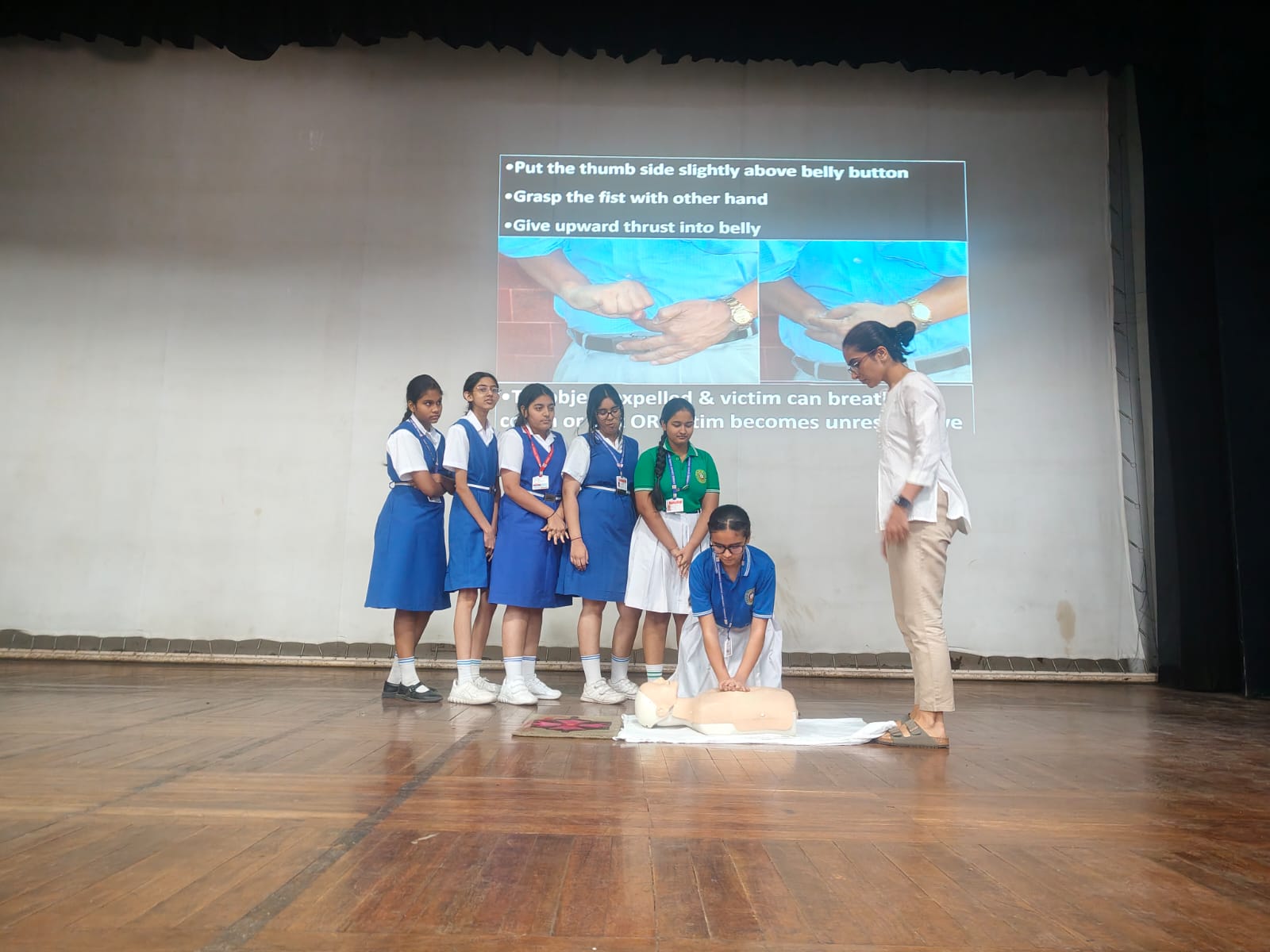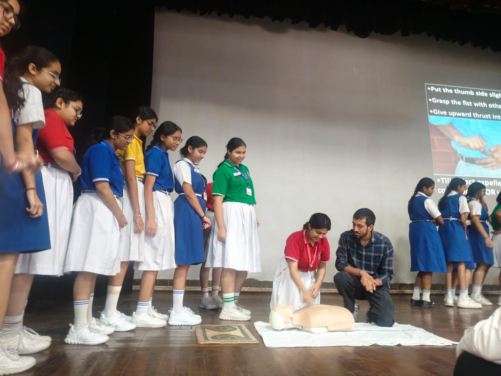 The workshop began with an engaging and insightful lecture on the topic “Adolescence and Skin” by Dr. Mala Bhalla. She explained the importance of maintaining healthy skin during adolescence and shared useful tips on managing common issues such as dandruff.This was followed by an informative session on the importance of CPR conducted by doctors from the Department of Anaesthesia, GMCH. Students received well-organized, hands-on training in this life-saving skill using dummies, which provided a realistic learning experience.