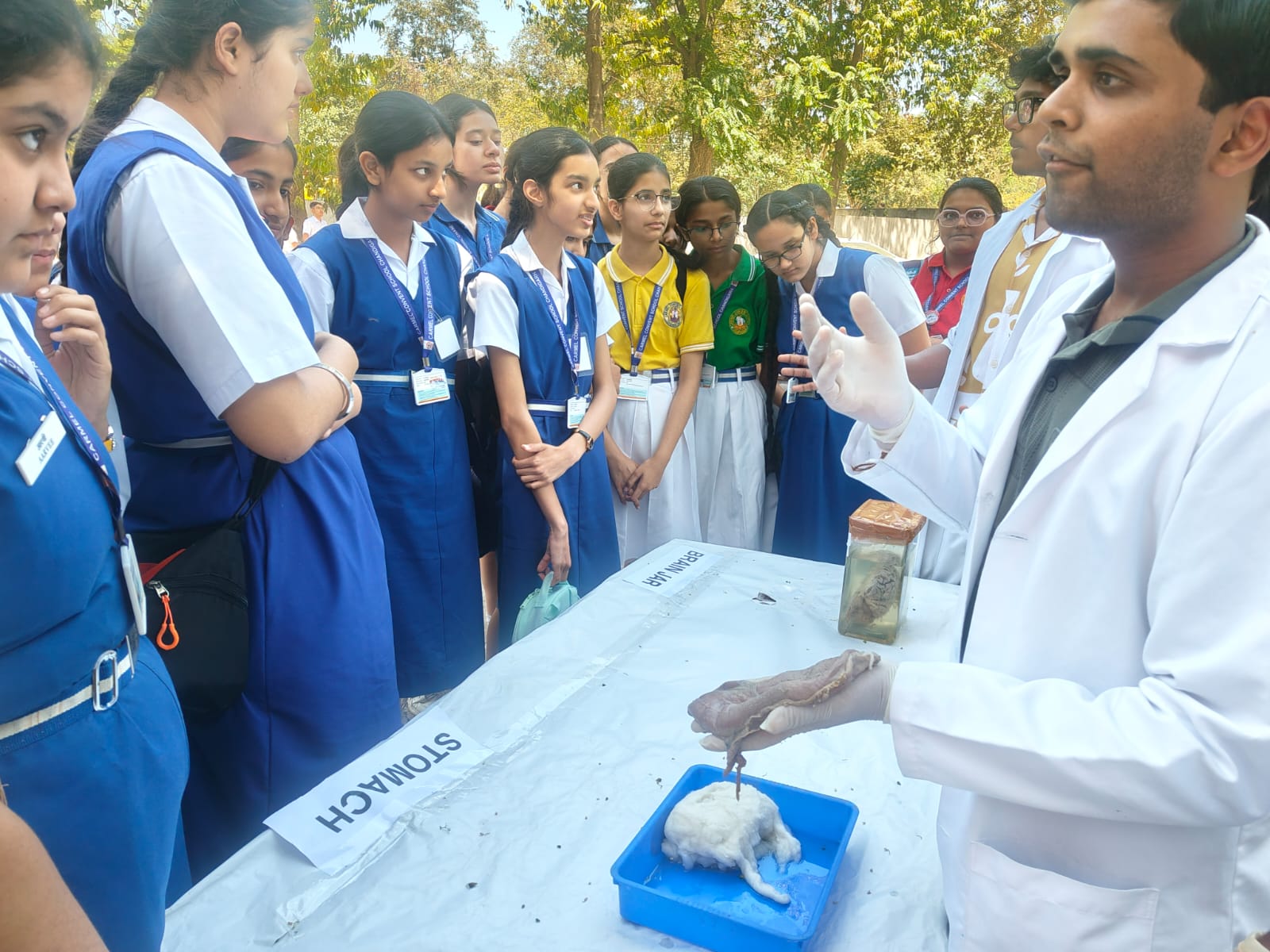 The final segment of the workshop featured a live demonstration of anatomical specimens conducted by MBBS students. This session offered students a fascinating firsthand introduction to the field of medical and healthcare education, making learning both engaging and practical.