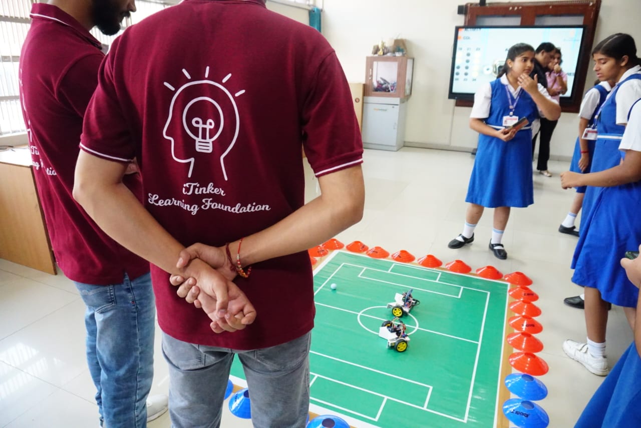 The Atal Tinkering Lab in collaboration with Tinker Learning Foundation, organized a technology showcase event on October 4, 2025. The primary objective of this event was highlighting the practical skills and innovative learning in app development and robotics acquired by our students. It served as a platform for students to present the projects which they had diligently created after participating in a comprehensive series of foundational workshops. Held on open day, the parents were invited to see students explain the mechanics and programming behind a diverse array of projects they had built themselves. The activities on display were Buzz Wire Game, Laser CNC Machine, Stick Catching Game, Robo Soccer, Carmel Times (Real Time Chat Application ), Roamwise (Travelling App), To-do list, UI UX design on Figma (Whatsapp, Instagram), Vibe Coding ( Ecotrack , Fitness Tracker).