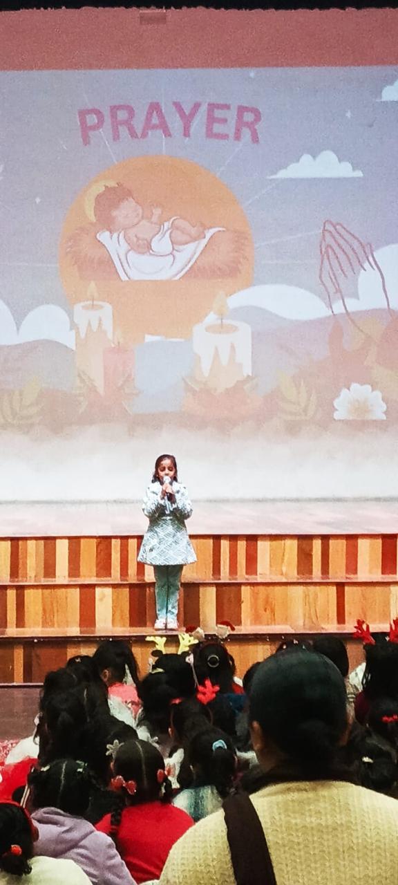 The programme commenced with a reverent prayer and bhajan, setting a serene and meaningful tone. This was followed by a graceful prayer dance presented by the young learners, reflecting devotion and joy. The children then beautifully introduced various Christmas symbols, helping everyone understand the true meaning of the festival.