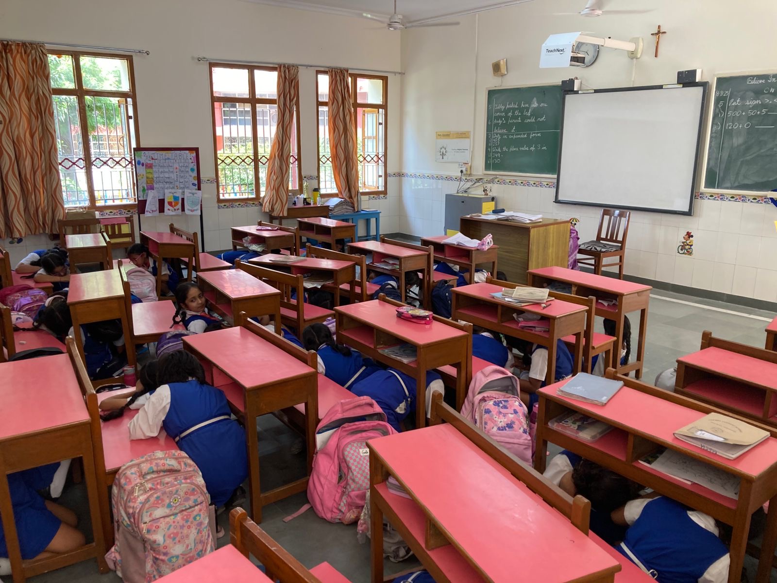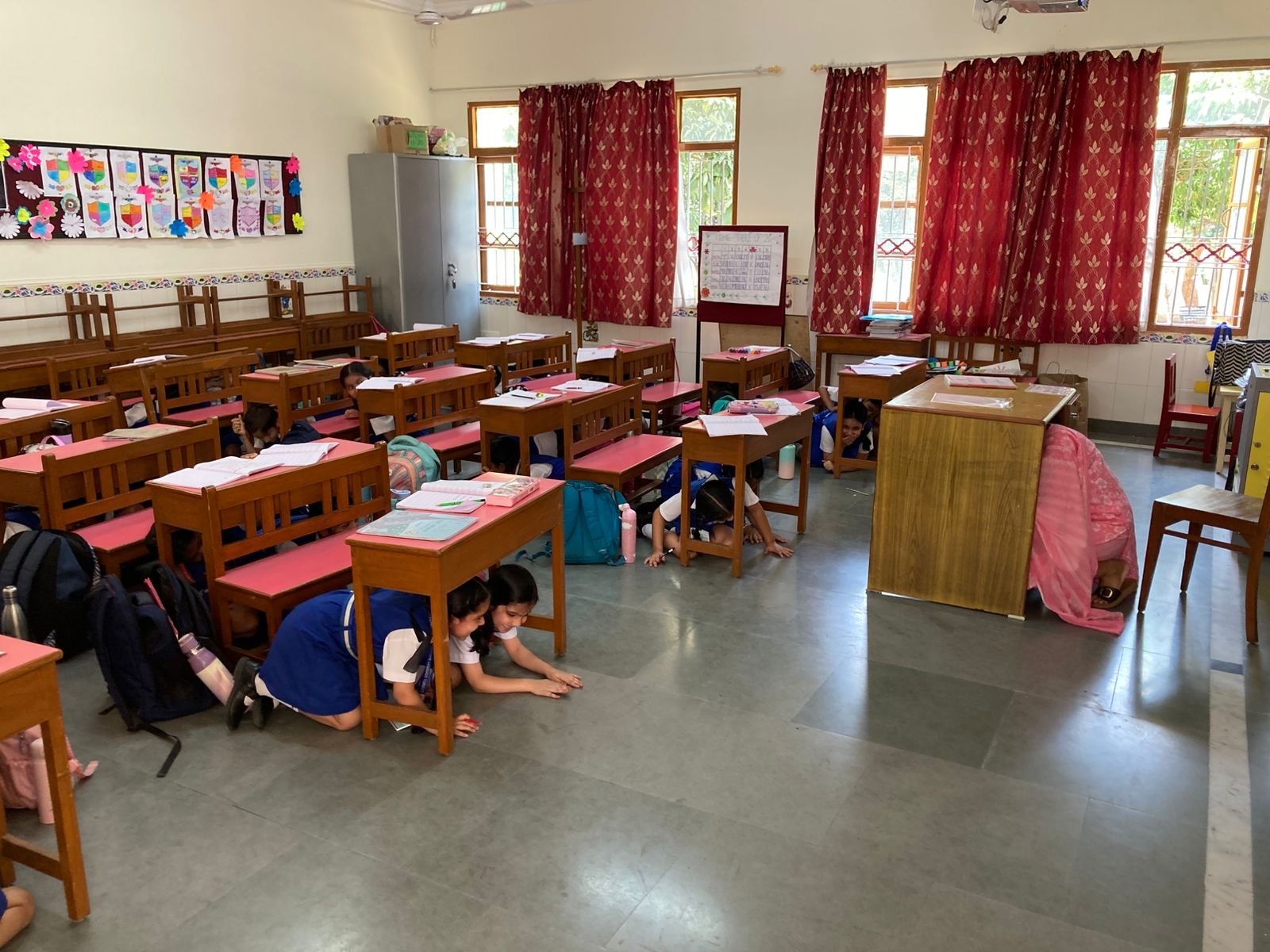The teachers guided the students to the safe zones in a calm and orderly manner. Everyone followed the safety and evacuations instructions. The attendance was taken once all the students reached their safe locations. The activity concluded successfully, reinforcing the importance of preparedness and quick action.