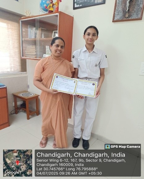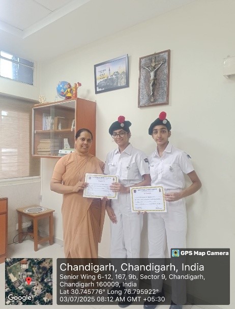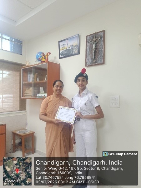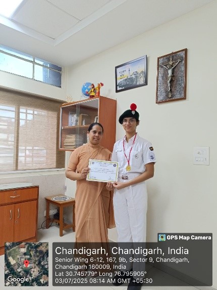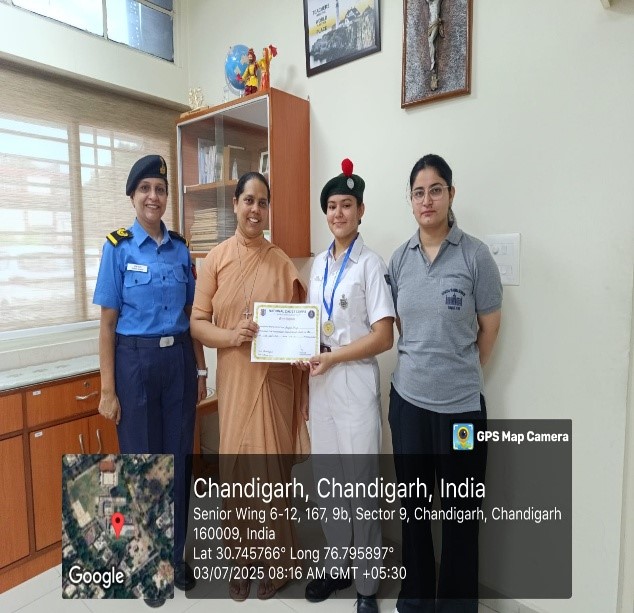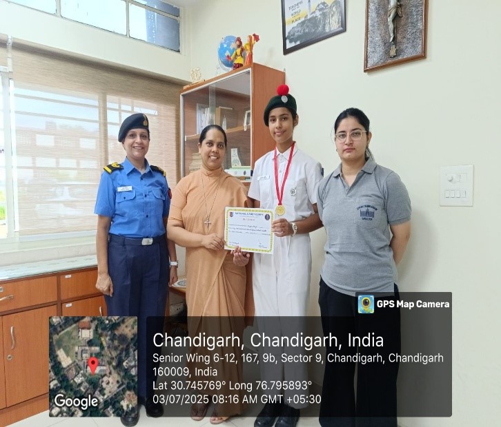On 3rd July 2025, a felicitation ceremony was organized at Carmel Convent School to honour the achievements of NCC cadets who participated and excelled in various competitions in ATC camp held at Government Model Senior Secondary School, Sector 23 (GMSSS-23), Chandigarh from 26th May to 4th June 2025. The event witnessed the gracious presence of the Principal Sr Shanta, Associate NCC Officer (ANO) T/O Preeti Swami, and GCA Ruchi Bala.